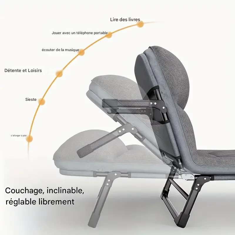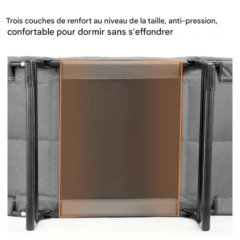 - Découvrez un confort ultime avec notre lit pliant. Son inclinaison douce vous dispense d'oreiller. Son matelas moelleux et épais vous assure un sommeil réparateur sans tensions au niveau de la nuque et des épaules. Idéal pour le camping, les voyages ou la maison, ce lit pliant est la solution idéale pour une nuit de sommeil confortable, où et quand vous le souhaitez. Vivez une expérience de détente inédite !